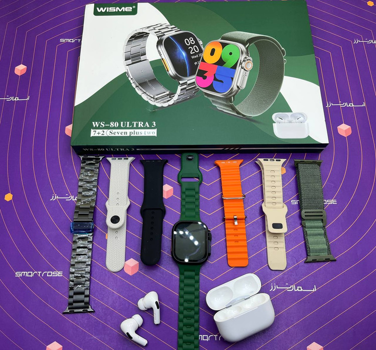 ساعت هوشمند مدل *WS-80 ULTRA3* *WISME* Germany 🆕 *دارای ۷ بند* بند رولکس سایز ۴۹ میلی متری سری ۱۱ دارای برنامه های ورزشی ریموت دوربین عکاسی و موزیک پلیر نمایش آب و هوا تنظیم نور صفحه و صفحه همیشه روشن دارای بلوتوث نسخه ۵/۲ پشتیبانی کامل از زبان فارسی منو فارسی 🇮🇷 *سایز ۴۹ میلی متری* سرعت عالی و بدون لگ منو ۳ دکمه کناری فعال مجیک باتون و دکمه پاور ماشین حساب، تقویم، گام شمار و کالری سنج، سنسور ضربان قلب، فشار خون، اکسیژن خون شارژ وایرلس جنس بدنه آلمینیومی قابلیت مکالمه و تماس از طریق بلوتوث و پاسخ به تماس ها نمایش مخاطبین فارسی نمایش پیام های فارسی 🇮🇷 دارای زبان فارسی 🇮🇷 قابلیت پاسخ دادن به تماس با ژست حرکتی برنامه تخصصی تلفن همراه FERE Fit دارای بازی 🎮 کنترل سنتر کامل پین بند رنگبندی: مشکی ⚫️ * گارانتی ۶ ماهه*