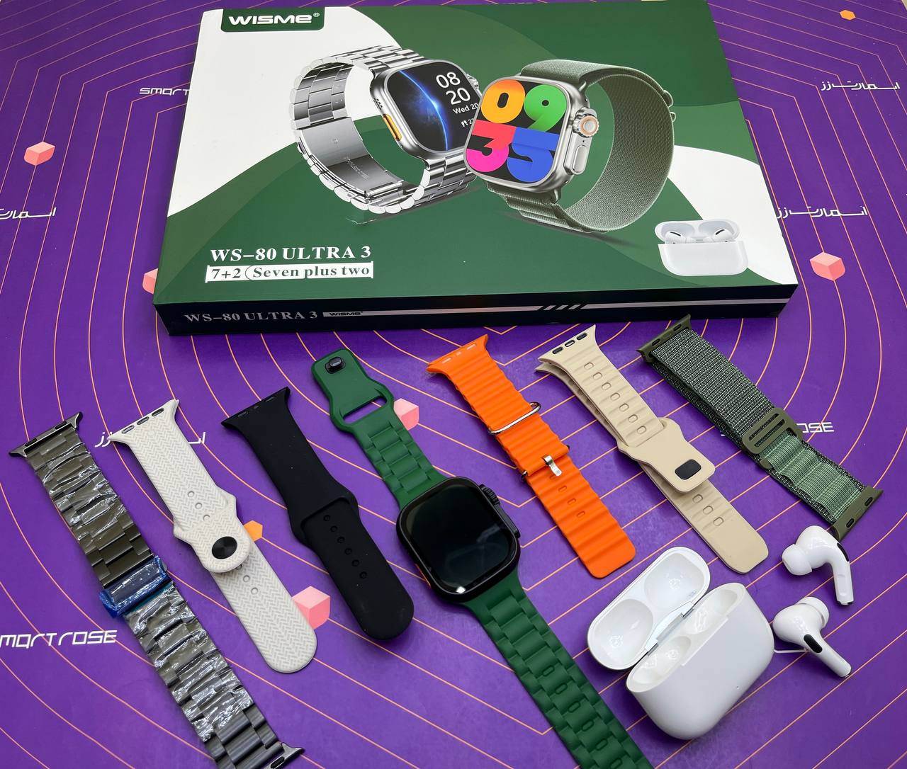 ساعت هوشمند مدل *WS-80 ULTRA3* *WISME* Germany 🆕 *دارای ۷ بند* بند رولکس سایز ۴۹ میلی متری سری ۱۱ دارای برنامه های ورزشی ریموت دوربین عکاسی و موزیک پلیر نمایش آب و هوا تنظیم نور صفحه و صفحه همیشه روشن دارای بلوتوث نسخه ۵/۲ پشتیبانی کامل از زبان فارسی منو فارسی 🇮🇷 *سایز ۴۹ میلی متری* سرعت عالی و بدون لگ منو ۳ دکمه کناری فعال مجیک باتون و دکمه پاور ماشین حساب، تقویم، گام شمار و کالری سنج، سنسور ضربان قلب، فشار خون، اکسیژن خون شارژ وایرلس جنس بدنه آلمینیومی قابلیت مکالمه و تماس از طریق بلوتوث و پاسخ به تماس ها نمایش مخاطبین فارسی نمایش پیام های فارسی 🇮🇷 دارای زبان فارسی 🇮🇷 قابلیت پاسخ دادن به تماس با ژست حرکتی برنامه تخصصی تلفن همراه FERE Fit دارای بازی 🎮 کنترل سنتر کامل پین بند رنگبندی: مشکی ⚫️ * گارانتی ۶ ماهه*